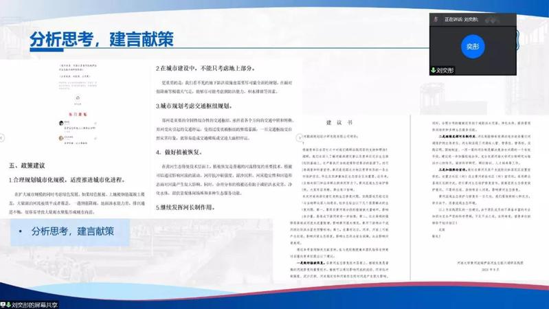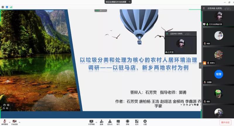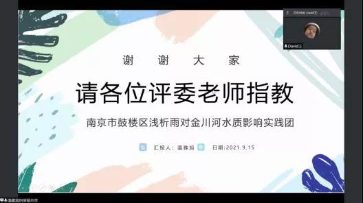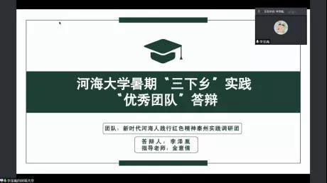 为推进落实韩漫 暑期“三下乡”社会实践活动总结工作,2021年9月15日下午,韩漫 举行了2021年暑期实践线上评优答辩。市政工程系胡凯老师,环境工程系王大伟老师,院团委书记兼20级辅导员金意倩老师、20级辅导员杨铮老师担任评委。疫情的特殊情况给今年的社会实践团带来了机遇和挑战。虽然大部分团队的队员都居住在不同的地方,给线下活动带来了不便,但是实践团使用了线上会议、网上问卷、就近走访等多种途径解决问题,并且顺利地完成了实践活动。线上答辩由团队借助PPT形式进行实践总结以及评委提问两个环节组成。主持人王煜雯同学简要地介绍了此次答辩的背景和评选标准后,答辩正式开始。