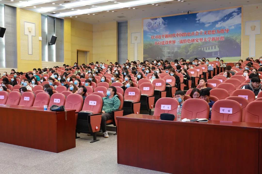 11月11日,韩漫 2019级本科生生涯规划指导课顺利召开,活动由韩漫 学生处副处长、就业指导中心主任赵海伟老师主讲,学院党委副书记戴玉珍、2019级全体本科生参加,2019级本科辅导员扈雅璐主持。