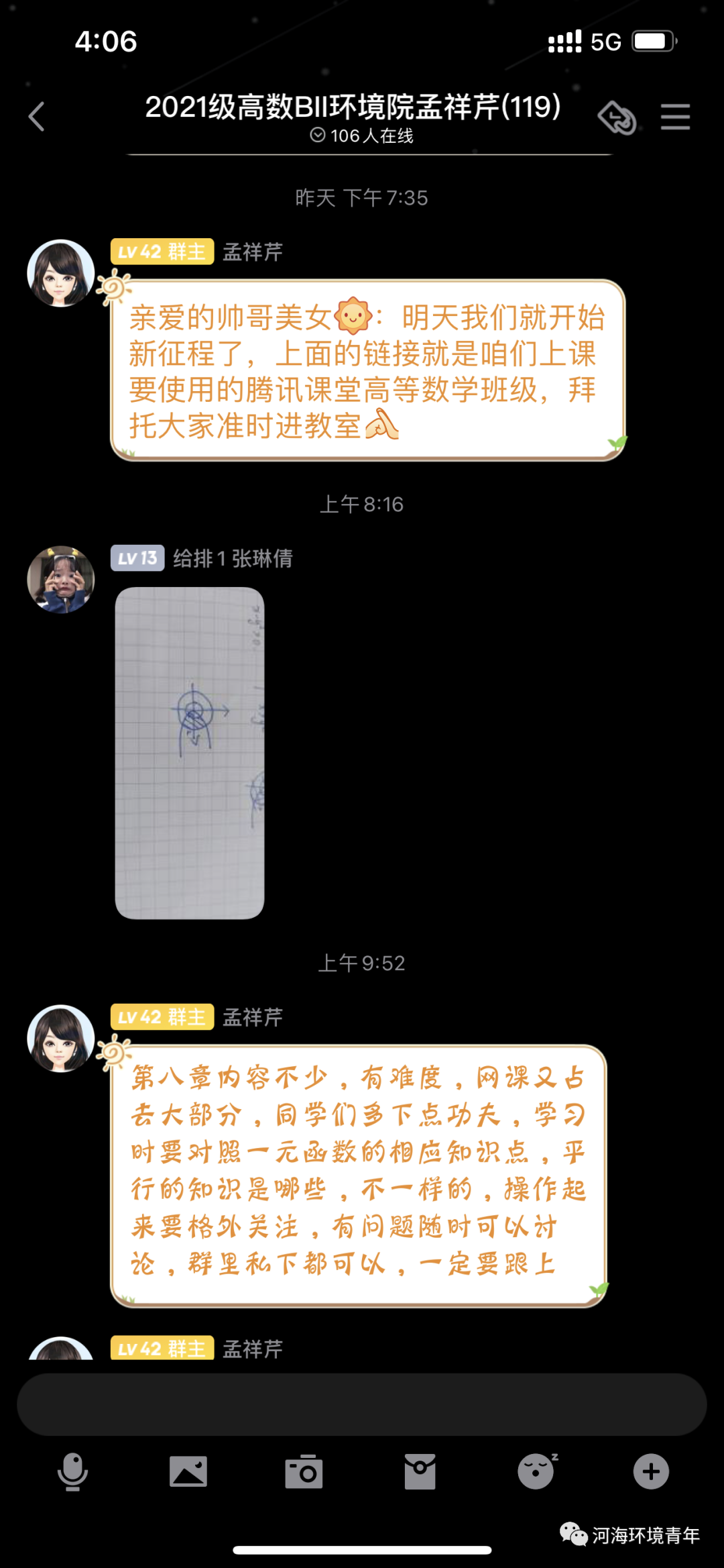 学院领导高度重视线上教学工作,为全面了解新学期初线上教学准备情况、师生线上到课情况,确保新学期教学工作正常运行,多次召开教学研讨会并线上听课。各年级辅导员均已加入学生学习课程平台进行线上听课。老师们通过 QQ直播、腾讯会议等多种多样的网上教学平台和干货满满的精品课堂,开启了同学们的新学期。