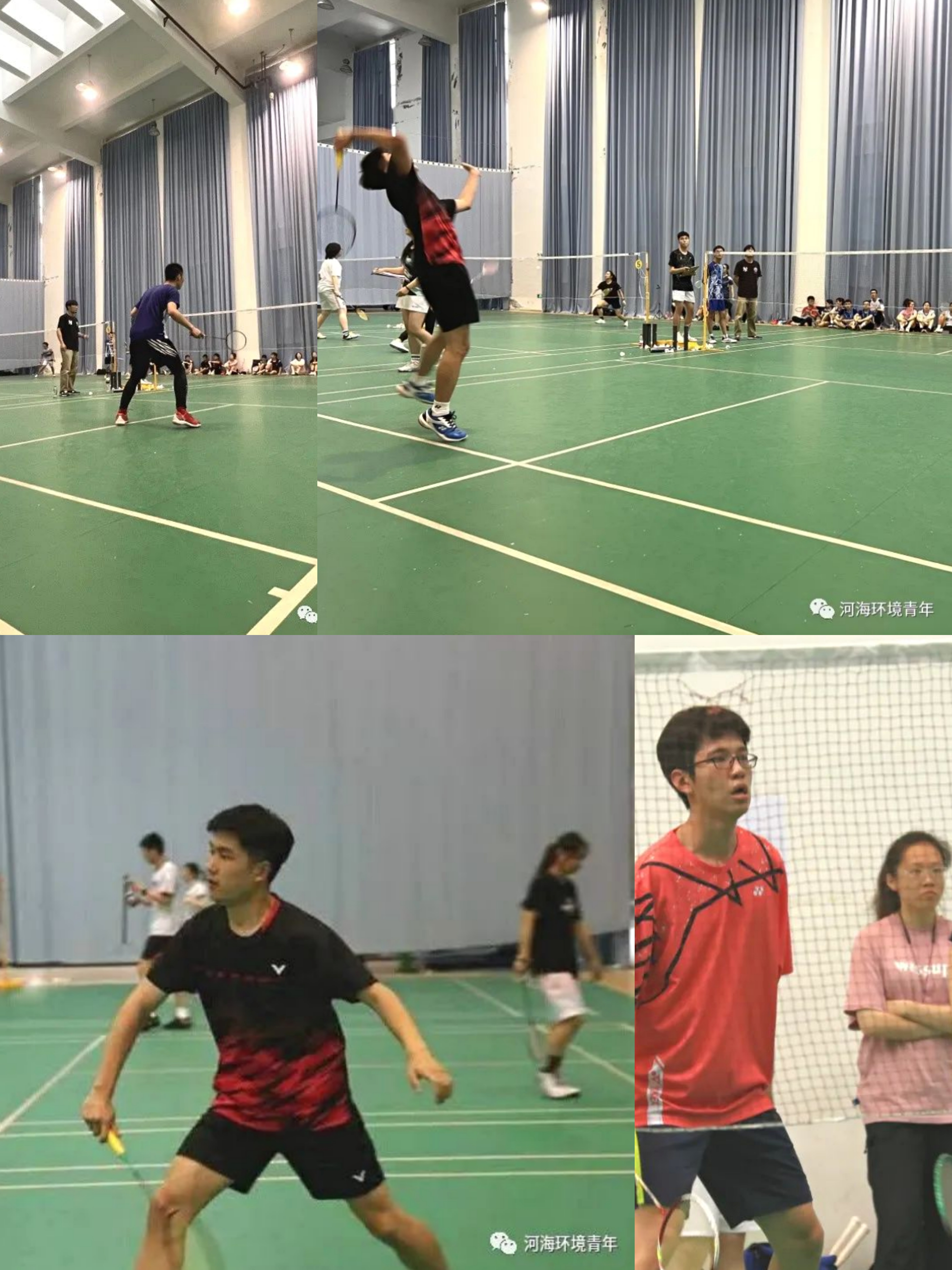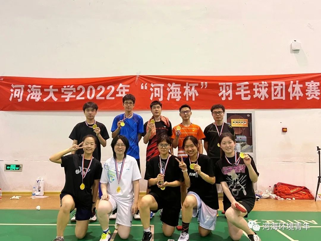 2022年“河海杯”羽毛球比赛于5月22日在江宁校区文体中心成功举办。本次参赛共有20支学院(学部)代表队参加。其中韩漫 羽毛球队由陈霁领队,带领张云博、黄琛然、陈德锐、周宜鑫、白沅禾、胡庭薇、陆照、杜巧歆、白艺涵在团体赛中荣获第一名。下面让我们一睹环境健儿们比赛时的风采。