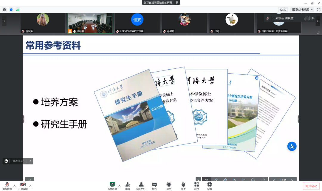 教学秘书单老师重点针对教学方面重点介绍了如何使用研究生教育教学管理系统、选课和学术活动等,提醒大家重视研究生培养的各个环节以及重要的时间节点、选课安排,要合理规划时间,确保按时毕业。