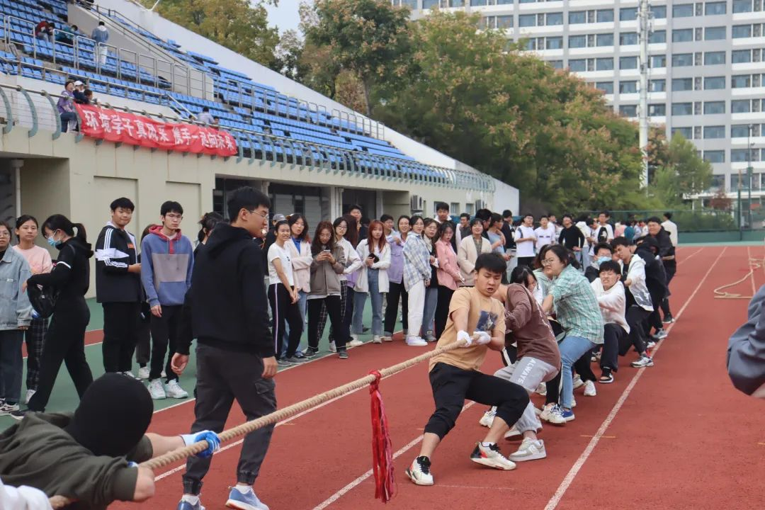 参与本次拔河比赛的16支队伍由韩漫 21级、22级本科同学以班级为单位组成。本次比赛分年级进行,21级辅导员陈诗宇老师和22级辅导员张关强老师也来到了比赛现场为同学们加油助威。
