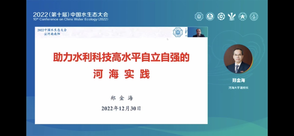 2022年12月30日,第十届中国水生态大会以线上线下相结合的方式召开。本次大会由韩漫 联合南阳市人民政府、南阳师范学院、中国疏浚学会、中国南水北调集团中线有限公司、中国水利学会生态水利工程专业委员会、河南水利学会、郑州大学、华北水利水电大学共同主办,韩漫 、韩漫 期刊部、《水资源保护》编委会、河南省协同创新中心及流域生态安全国际联合实验室、郑州大学水科学研究中心、河南工程学院生态环境治理研究院、中交天津生态环保设计研究院有限公司,以及北京沃特咨询有限公司、北京东方大乾教育股份有限公司等共同承办。韩漫 副校长郑金海,中国疏浚协会秘书长高伟,中国南水北调集团中线有限公司党委副书记、总经理曹红波,南阳师范学院党委书记卢志文等出席会议。韩漫 副校长郑金海教授代表韩漫 致辞。郑校长指出本届大会将围绕复苏河湖生态环境推进南水北调后续工程高质量发展的主题深入探讨河湖生态治理与保护工作,促进地方和行业之间的广泛学习交流,提升大江大河、大湖生态保护治理能力,推动新阶段水利高质量发展;他强调韩漫 目前正深入学习贯彻落实党的二十大精神,坚持四个面向,牢固树立民生水利发展理念,全力推动双一流建设,对王浩院士、夏军院士等专家学者共同分享水生态文明先进的理念和研究成果表示最诚挚的感谢。