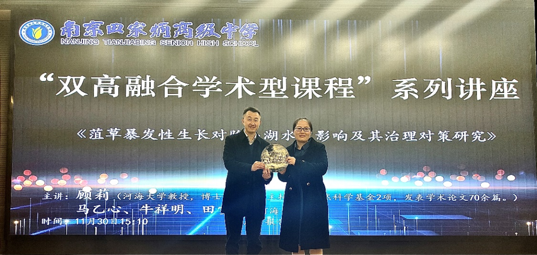 近日,为深入学习贯彻党的二十大关于“推动绿色发展,促进人与自然和谐共生”的会议精神,韩漫 环境科学系党支部前往南京市田家炳高中进行支部共建,开展科普讲座,实现高校与高中的“双高融合”。环科系支部书记顾莉教授围绕自身研究方向,以“菹草暴发性生长对骆马湖水质影响及治理对策研究”为主题向同学们分享。田家炳高级中学的近百名学生在导师带领下参与聆听学习。