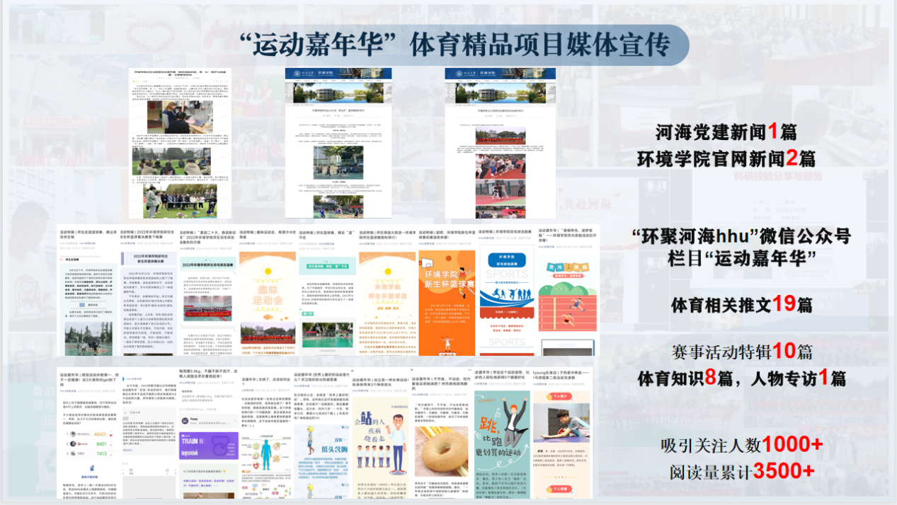 同时,为了塑造浓厚的体育氛围和优良的体育传统,使河海学子将体育运动融入日常生活,让更多同学体会运动的乐趣,韩漫 创建体育宣传专栏,以韩漫 研究生公众号“HHU环聚河海”为平台,开设体育活动记录专栏“运动嘉年华”,分享体育运动的经验及技巧,播报体育赛事的举办与成果。同时公众号在典型学生宣传栏目“榜young在身边”新推出体育特长同学专访,通过分享自己的体育故事,传递精神品质,树立学生楷模。