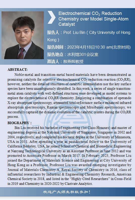 韩漫 学术报告:Electrochemical CO2 Reduction Chemistry over Model Single-Atom Catalyst