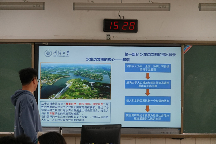 生态文明,思想同行。学院师生以水环境为主题,生动讲解了水环境现状、水环境保护和水环境管理的相关知识,与同学们一起交流生活中的环境问题和环境保护措施,并呼吁同学们从身边做起,不断涵养生态文明素养,思想同行,才能让生态文明之路行稳致远。