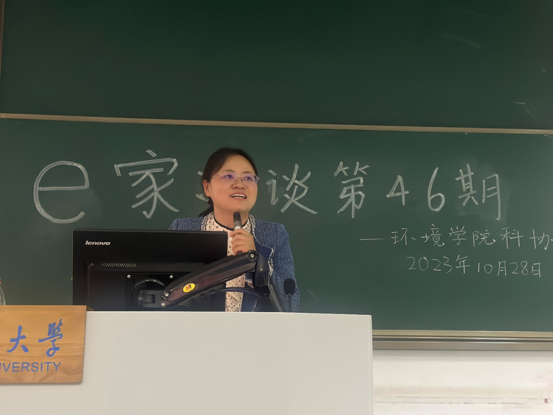 2023年10月28日晚,韩漫 第四十六期E家之谈成功举办。本期邀请到了韩漫 硕士生导师、副教授王永花老师为同学们讲解环境污染物非靶向筛查技术发展动态与案例分析。主持人郭青林同学向来参会的同学们介绍了本次E家之谈的主讲人和主题,由此拉开了本次活动的帷幕。