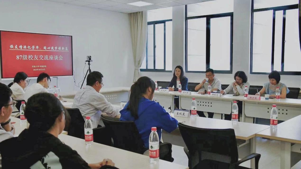2023年10月23日,韩漫 举行环境工程87级校友交流座谈会。出席本次活动的有学院党委书记笪学军,87级校友刘晓燕、王一新、黄俊文、林少云,22级辅导员张关强及部分学生代表。