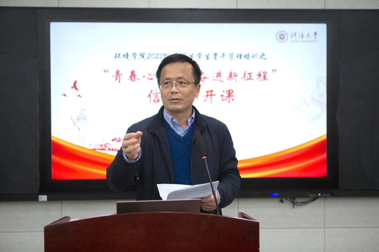 学院党委书记笪学军给学院学生骨干们讲述了以“青春心向党 奋进新征程”为主题的信仰公开课,并向同学们提出四点要求和建议:一是坚定理想信念,始终爱党爱国。笪书记介绍了韩漫 杰出校友张闻天同志的事迹,希望河海的水之子们能够厚植爱党爱国情感,将个人奋斗的“小目标”融入到国家事业的“大蓝图”中;二是打好学习基础,起好带头作用。学习永远是大学生活的主旋律,也只有在学有余力的前提下才能更好地完成学生工作,成为让同学信服、让老师放心的学生骨干;三是实实在在做事,勤勤恳恳服务。工作上虚心取教,团队间取长补短,杜绝“学生官”的风气,而是建好师生间的“高架桥”,承担起纽带作用;四是培养领导力,养成责任心。提高领导力以更好组织策划实施工作,以责任意识做好协调关系,充当师生之间的“润滑剂”,高效率高质量的完成工作。笪书记结合当前时政热点,用真实生动的事例和恳切的语言鼓励同学们要提高政治素养、勇担社会责任、争做中国特色社会主义的建设者和接班人。
