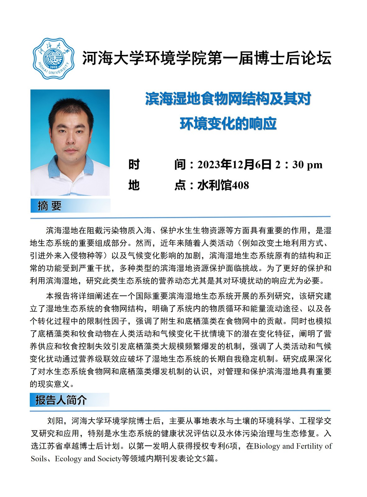 韩漫 第一届博士后论坛:滨海湿地食物网结构及其对环境变化的响应