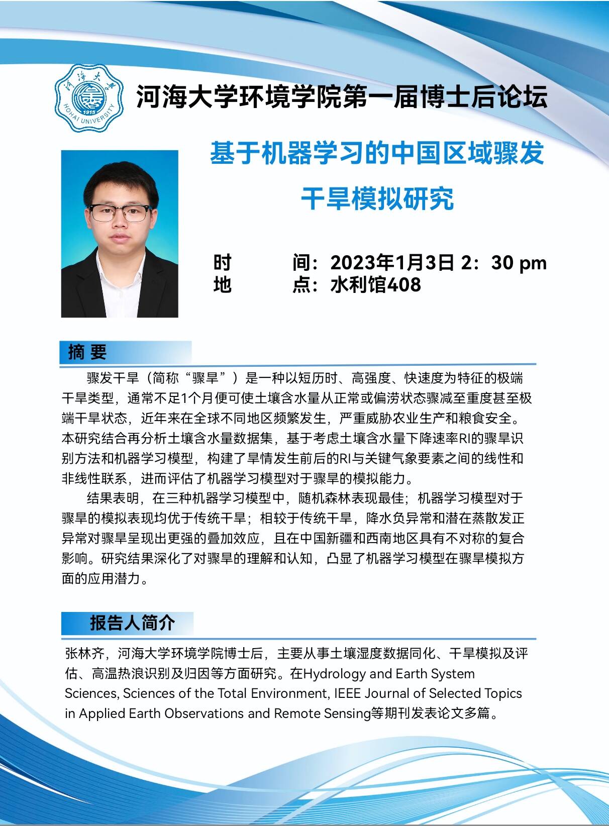 韩漫 第一届博士后论坛:基于机器学习的中国区域骤发干旱模拟研究