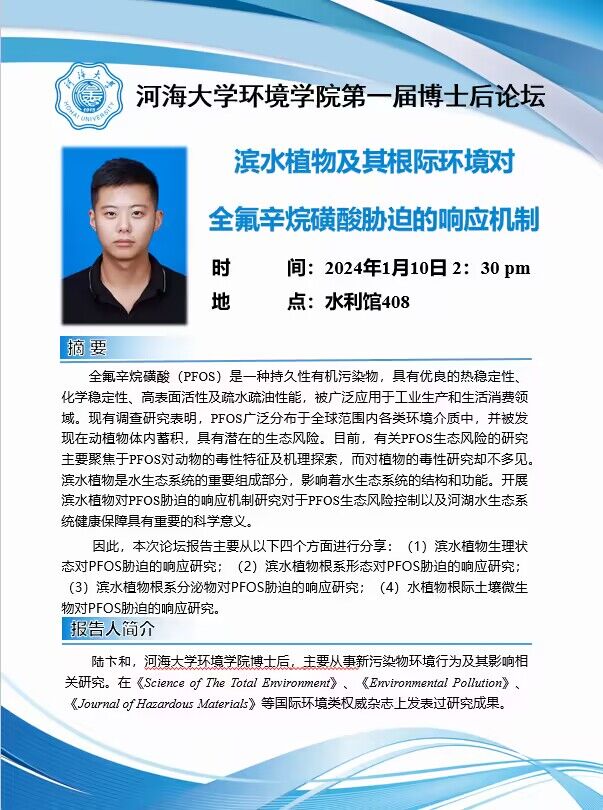 韩漫 第一届博士后论坛:滨水植物及其根际环境对全氟辛烷磺酸胁迫的响应机制