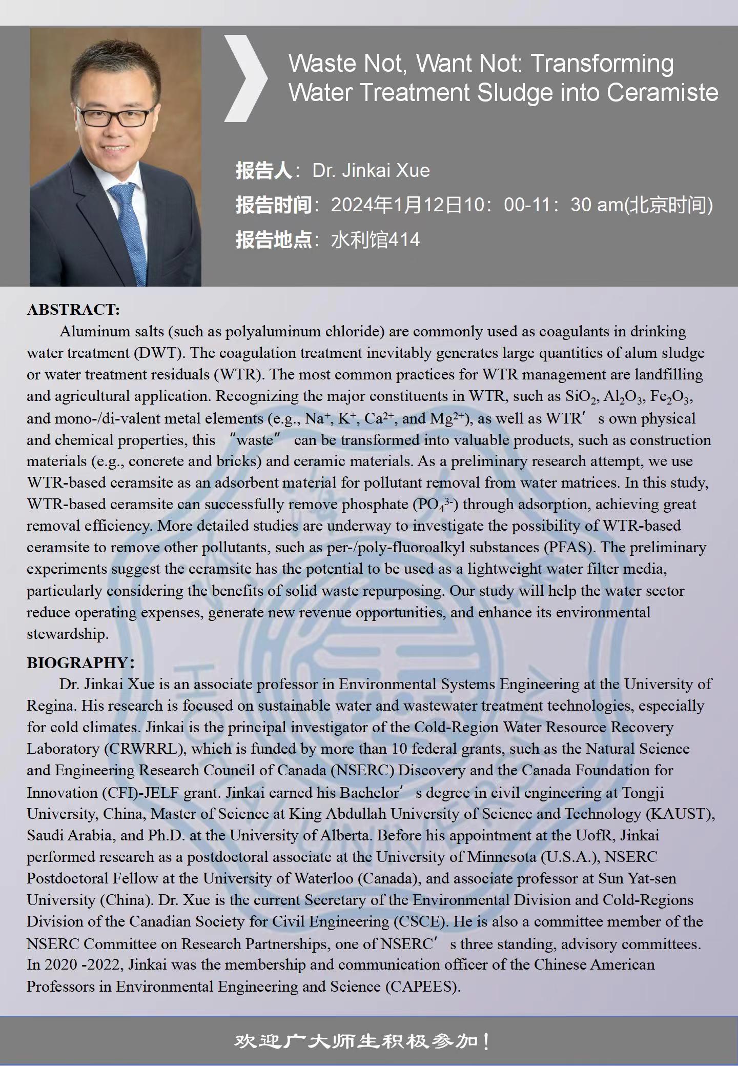 韩漫 学术报告:Waste Not, Want Not: Transforming Water Treatment Sludge into Ceramiste