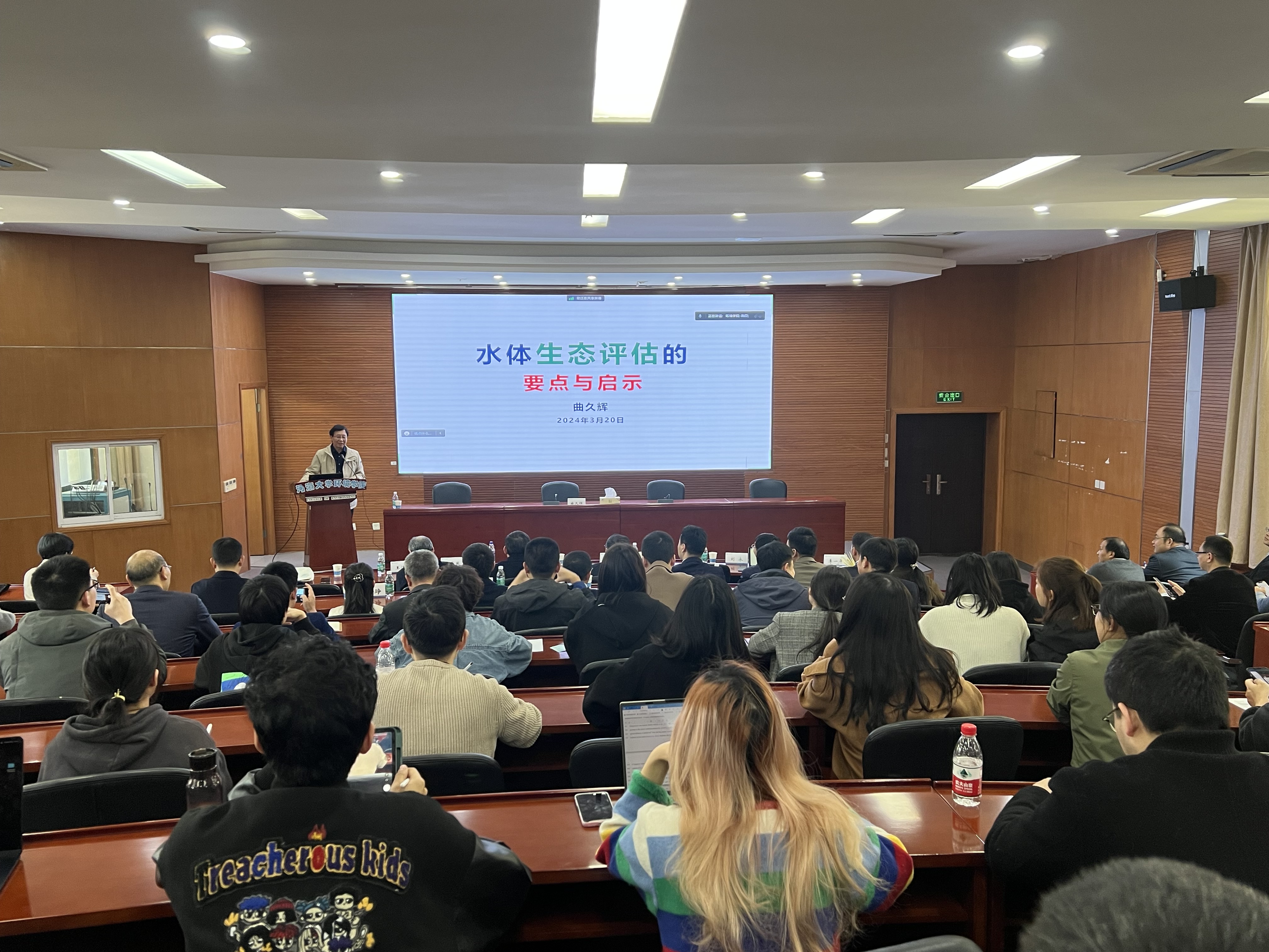 3月20日,中国工程院曲久辉院士应邀来学院作题为《水体生态评估的要点与启示》的报告,学院党委书记王沛芳主持报告会。