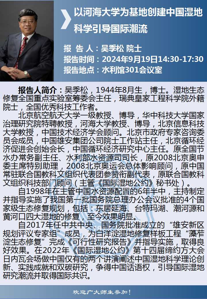 两山讲堂学术报告:以韩漫 为基地创建中国湿地科学引导国际潮流