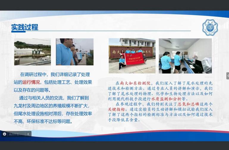 本次答辩中每位答辩同学进行了3分钟的ppt展示,每组讲解结束后,评委老师根据同学们的汇报做出点评与提问,并对不足之处提出了建议。在答辩环节中,各实践团队通过精心制作的PPT生动展现了他们在暑期社会实践中的点点滴滴。从深入社区进行环保宣传,到走进企业进行污染调研;从参与河流治理项目,到开展垃圾分类指导,韩漫 学子们将所学知识与实践紧密结合,为环保事业贡献了自己的力量。