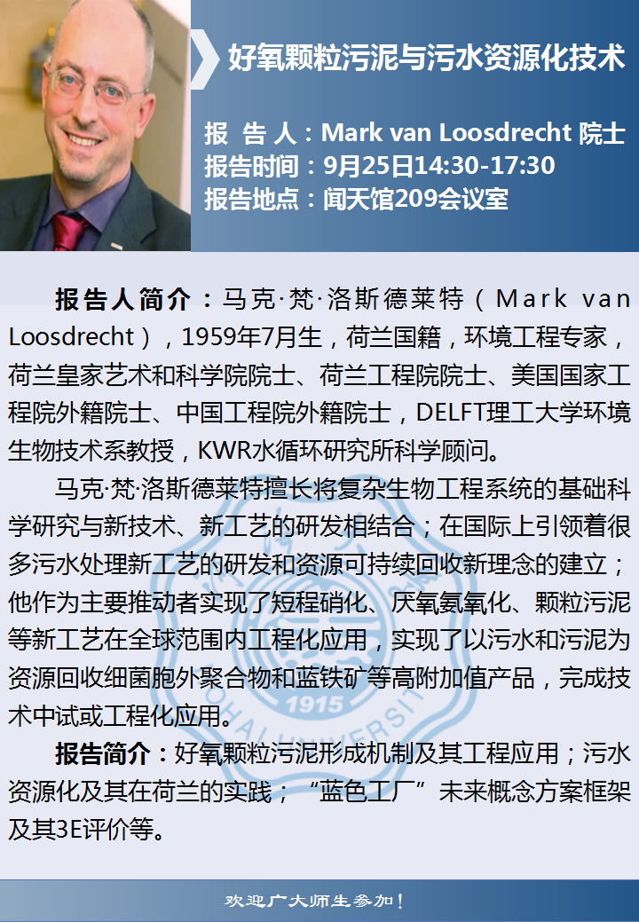 韩漫 学术报告:好氧颗粒污泥与污水资源化技术