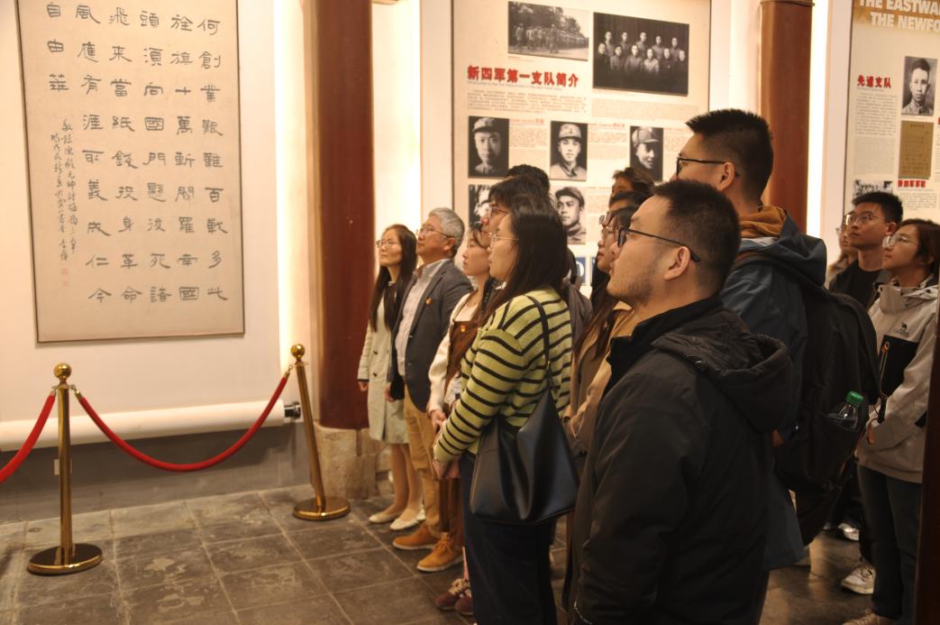 进入新四军军部旧址的展厅,四周的墙壁上陈列着抗战时期的英雄人物和与高淳抗战相关的史实图文。两个支部的党员们怀着崇敬的心情参观和体悟了新四军从成立到取得高淳抗战胜利的整个过程,深切感受到了新四军将士们英勇抗日的革命精神和不屈不挠的斗争意志。