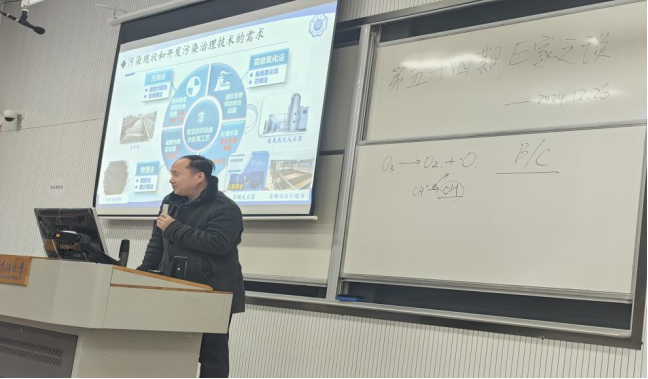 郭勇老师以当今河流污染现状及常规处理技术为切入点,引出本次分享的新型光催化污水处理技术。他详细介绍了光催化技术的发展历程,进一步讲解了光催化技术在气相污染治理中的商业化应用,以及该技术在水相污染治理中的挑战与机遇,为同学们全面且深入地普及了光催化技术的相关知识。
