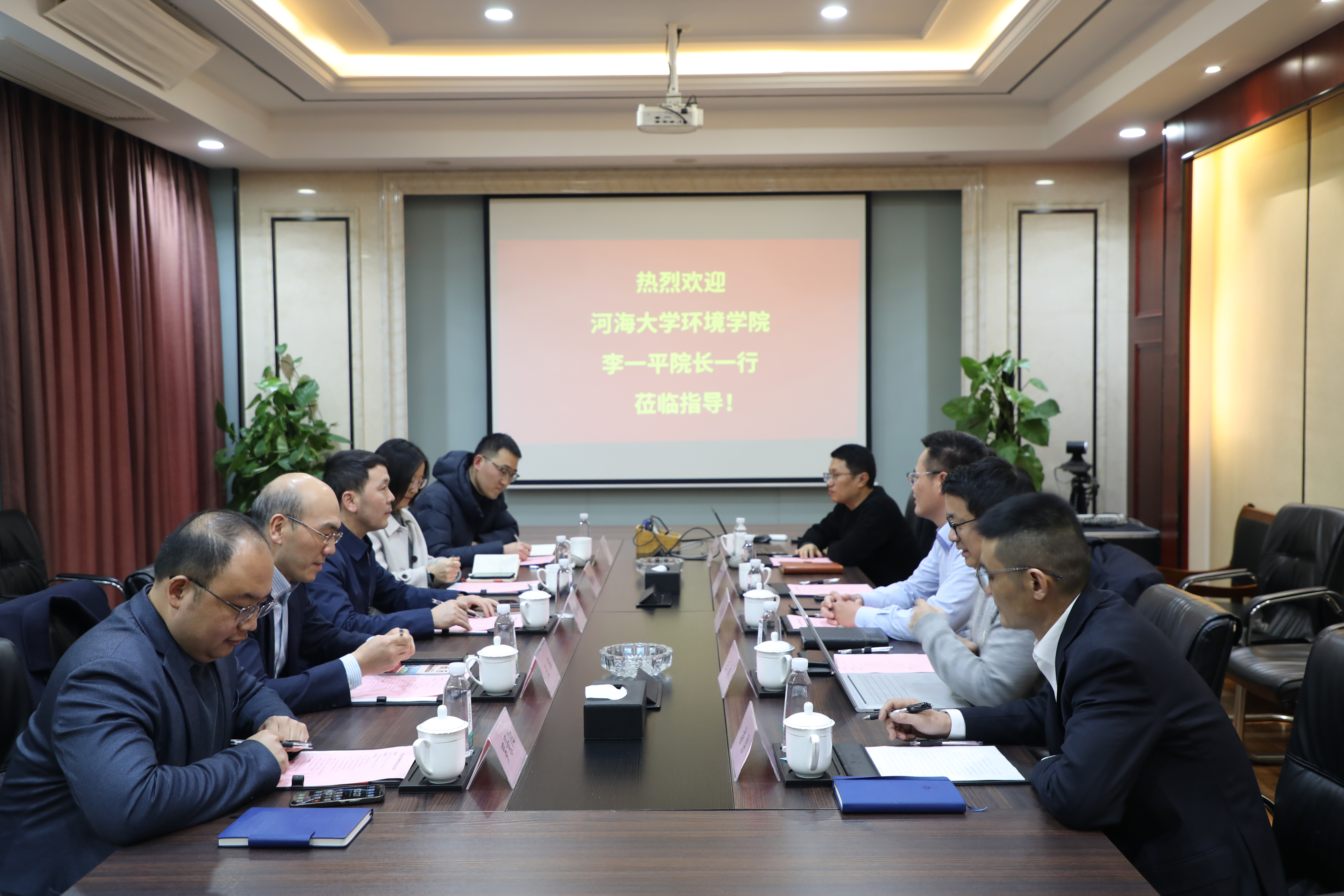 为贯彻落实党中央、国务院、省教育厅关于高校毕业生就业工作的决策部署,进一步开拓毕业生就业岗位,深化校企合作协同育人,2月4日,院长李一平、党委副书记戴玉珍、副院长王华、罗景阳等一行赴江苏南大环保科技有限公司开展定向访企拓岗专项行动。南大环保党总支书记王利慧、南大环保技术顾问、生态环境部有机化工废水处理与资源化工程技术中心主任张炜铭及各业务部门负责人共同参与座谈。